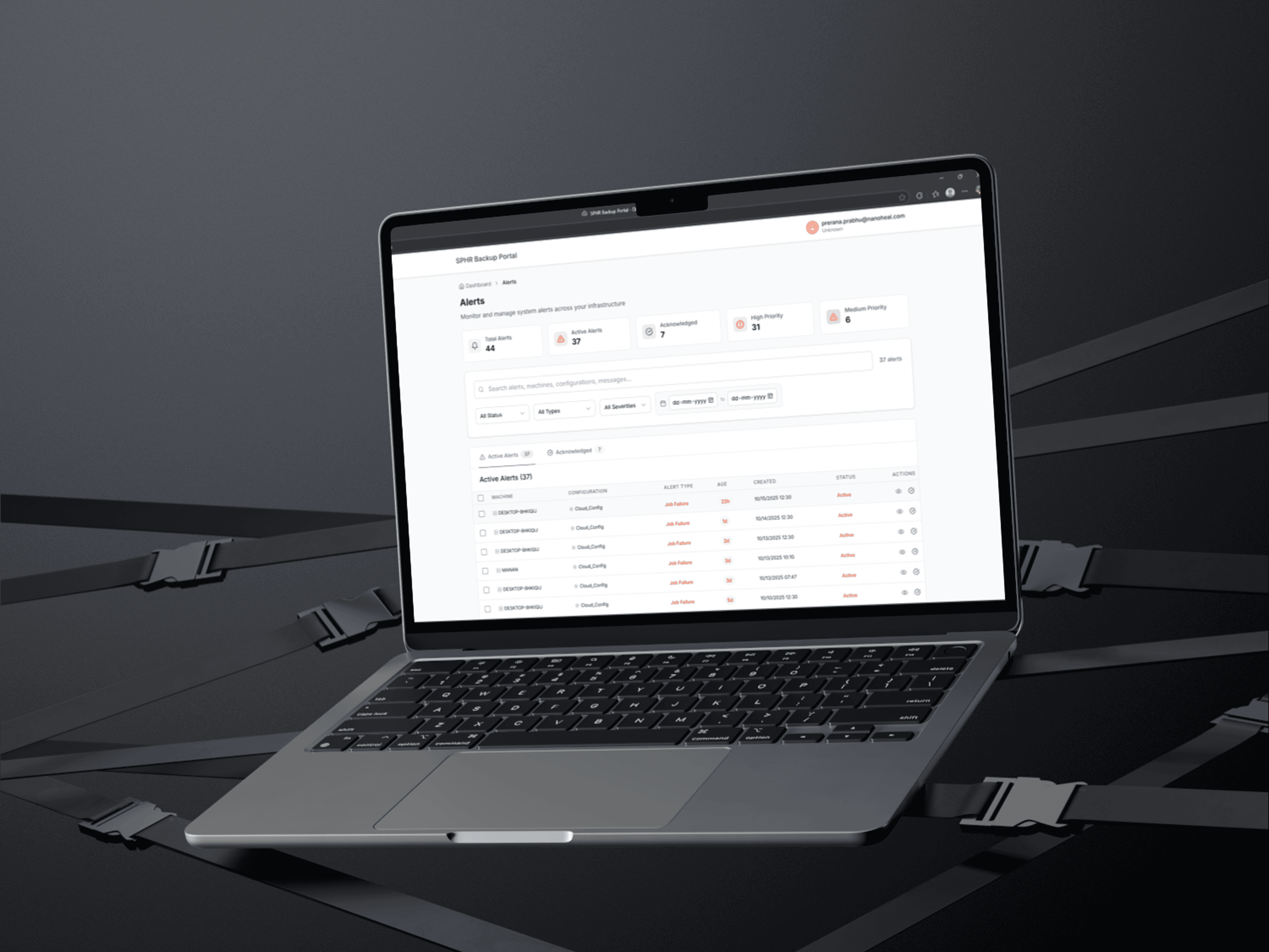 The core problem was that administrators had no unified way to monitor backup activity across machines, making it difficult to detect issues, understand job performance, or manage alerts in time. Information lived in separate logs and tools, causing delays, manual checking, and frequent oversight. Stakeholders needed a single, reliable dashboard that could surface real-time system health, highlight failures clearly, and support fast investigation without overwhelming users with technical complexity.